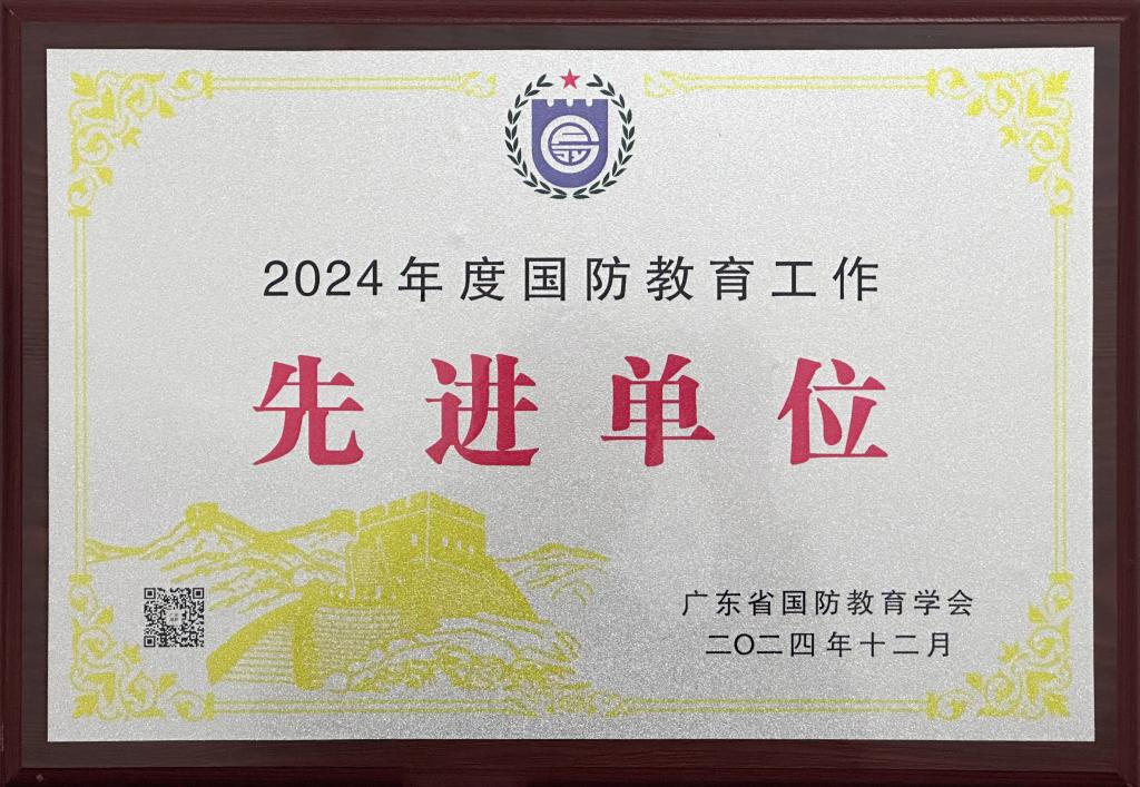 近日,广东省国防教育学会公布了2024年度国防教育工作先进单位和先进个人名单。我校获评“2024年度国防教育工作先进单位”。