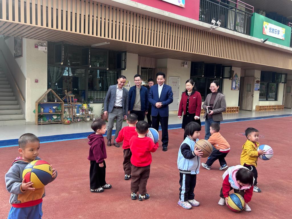 张斌一行在幼儿园负责人的陪同下,深入到幼儿园各教学场所、活动场地、游乐玩具设施、厨房后厨及周边环境等进行了实地查看,详细了解幼儿园保育教学、师资队伍、日常管理、食品安全卫生、各类设施设备保障和新学期开学等方面的情况,并与教师、保育员和孩子们进行了亲切的互动交流。