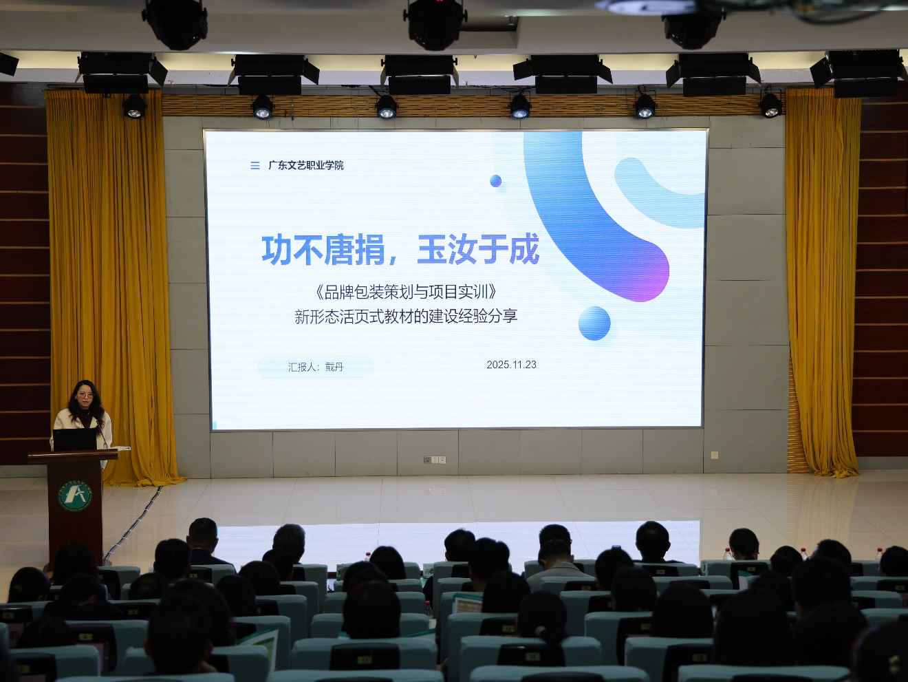 专题培训环节,广东文艺职业学院戴丹副教授以《品牌包装策划与项目实训》为例,分享新形态活页式教材建设经验;广州职业技术大学教务处长周晖教授围绕“校企双元、数字赋能”,详解“五金”建设的实践路径;外研社陈苑、高教社林群生分别从数字教材研发、精品在线开放课程建设提供专业指导。四位校外专家的报告紧扣职教改革趋势,为我校“五金”建设注入了新动能。