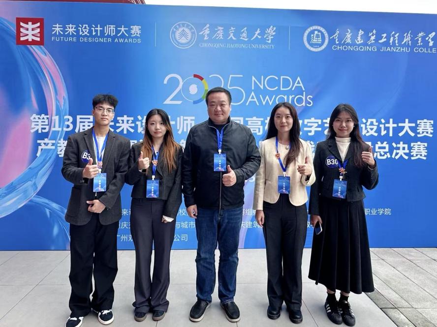 近日,第13届未来设计师・全国高校数字艺术设计大赛(NCDA)产教融合赛道——数智文创实践挑战赛全国总决赛在重庆建筑工程职业学院(东站校区)顺利落下帷幕。我校数字创意学院代表队(成员:关佩欣、柳瑾妍、叶茂盛;指导教师:杨赛男、罗翊夏)凭借省级一等奖的成绩晋级全国总决赛,历经激烈角逐,从123支优秀参赛团队中脱颖而出,再次荣获全国一等奖。指导教师罗翊夏获评全国总决赛“优秀指导教师”,为学校争得荣誉。