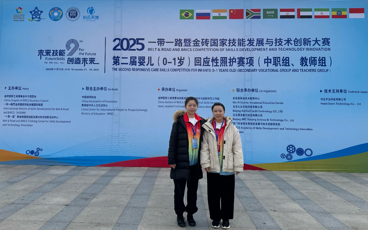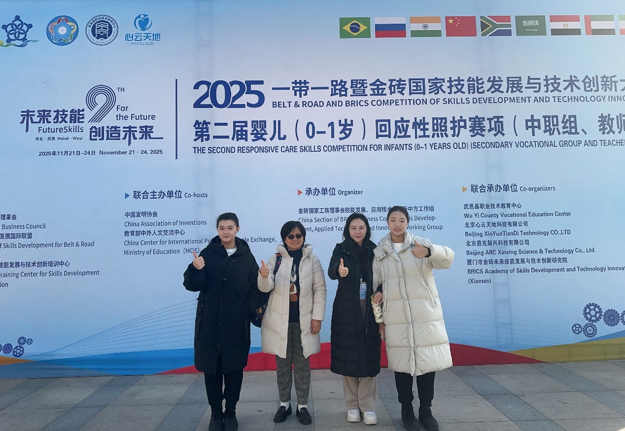 11月21日至24日,2025“一带一路”暨金砖国家技能发展与技术创新大赛——第二届婴儿(0-1岁)回应性照护赛项全国决赛在河北省武邑县职业技术教育中心成功举办。本届大赛吸引全国众多院校参与,参赛总人数达348人,竞争激烈。我校学前教育学院选派四支参赛团队,最终斩获2金2银的优异成绩,充分展现学校育人实效与师生综合实力。