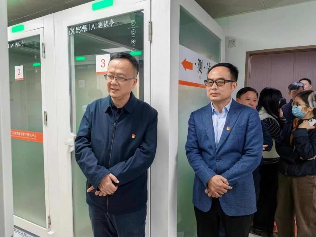 党员同志们实地参观了普通话水平测试考场、广东省普通话水平测试质量监控中心、语言文字数字资源研发中心、视力残疾和听力残疾人员普通话水平测试专用考场及“同语同心园”党建文化宣传阵地,参加了普通话水平模拟测试实践活动,深入了解学校在语言文字工作和党建融合方面的创新实践。
