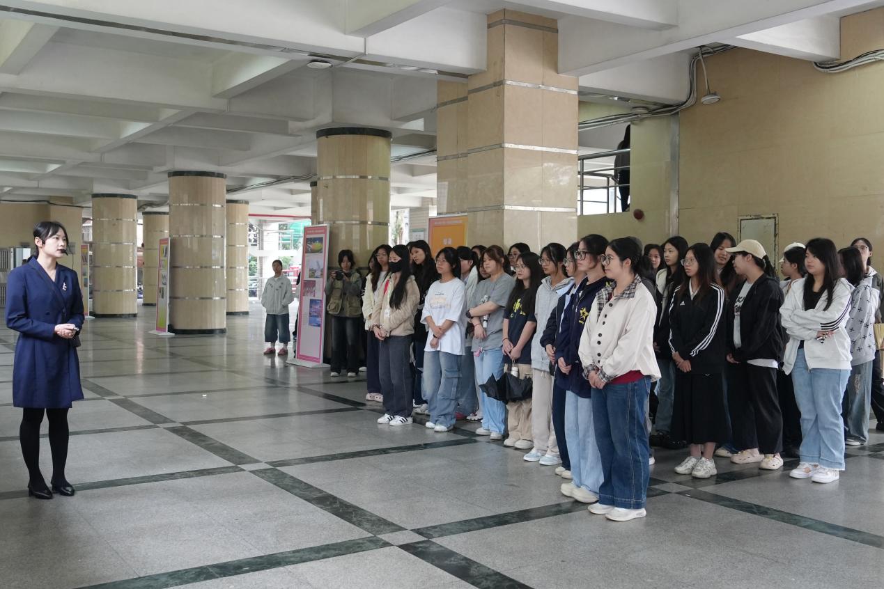 图:省档案馆讲解员带领学校师生参展并讲解