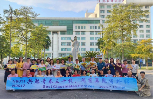 花开盛夏正当时,外师校园满庭香。2023年7月15日,我校1993届中师(原广东外国语师范学校)9011和9012班毕业生在燕岭校区二楼会议室庆祝毕业三十周年。两班的班主任和任课老师林裕旭、饶少群、李明、谢东海和魏红梅等老师应邀出席了本次聚会。