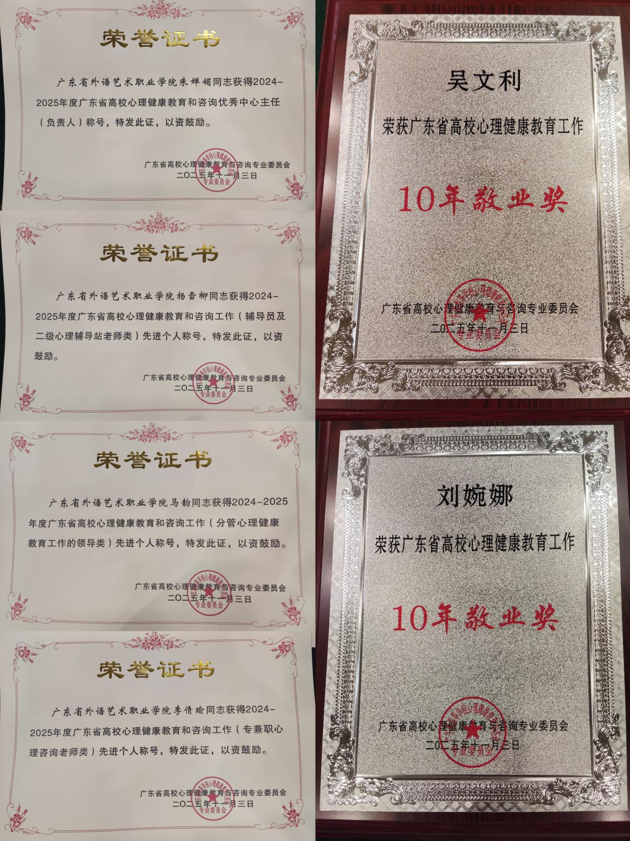 图:我校教师获广东省高校心理健康教育和咨询工作先进个人等多项称号