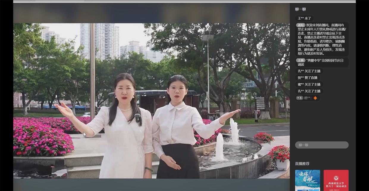 活动启动后,国家语言文字推广基地(金鼎娱乐最新官方网址)充分发挥统筹协调职能,联动全校相关部门、二级学院,积极参与“典耀中华”主题读书行动——全国校园节庆日诵读活动接力。经过精心培育与严格遴选,学校共选送6件作品报送中国教育电视台,其中4件作品被成功采纳,并于4月23日在全国校园节庆日直播活动中精彩亮相。