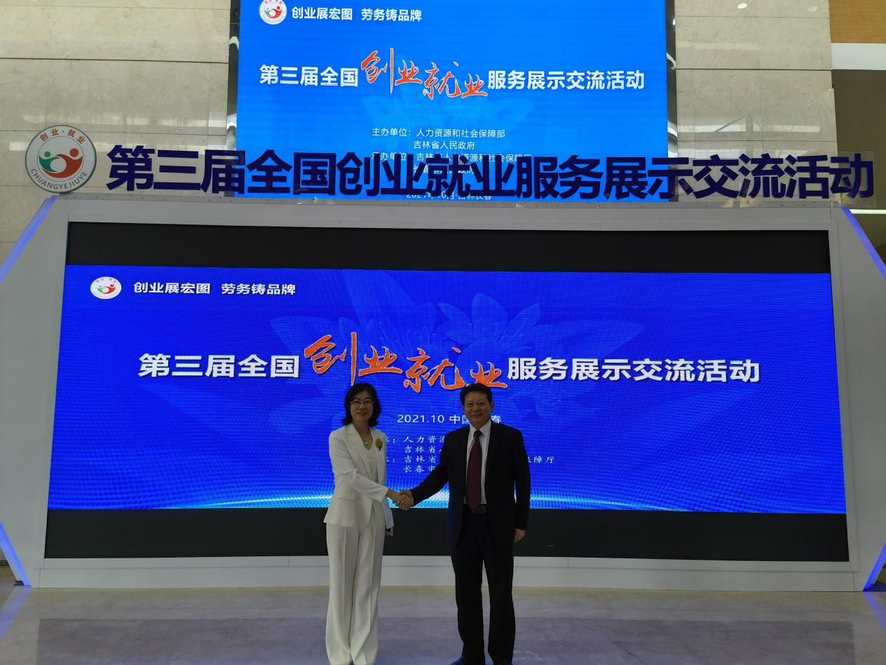 10月14-16日,第三届全国创业就业服务展示交流活动在吉林省长春市举办。我校与广东全优加教育发展有限公司、广东现代家庭教育研究院作为广东省人力资源和社会保障厅推荐参加“合作共赢促就业”劳务品牌对接洽谈会的广东省唯一项目—广东“南粤家政”特色项目,参加了第三届全国创业就业服务展示活动并在洽谈会上现场签约。根据主办方安排,全国共有6个合作项目在本次活动中现场签约。我校党委委员、副校长郝勇,广东全优加教育发展有限公司董事长、广东现代家庭教育研究院执行院长孙伟文代表双方签约。