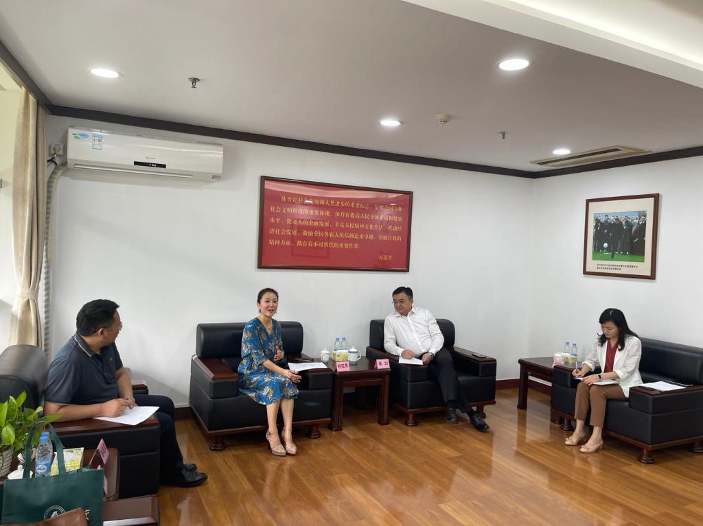 朴红梅一行受到广东省体育局党组书记、局长崔剑的热情接待。省体育局群众体育处、人事保卫处和广东省社会体育和训练竞赛中心负责人参加会谈。