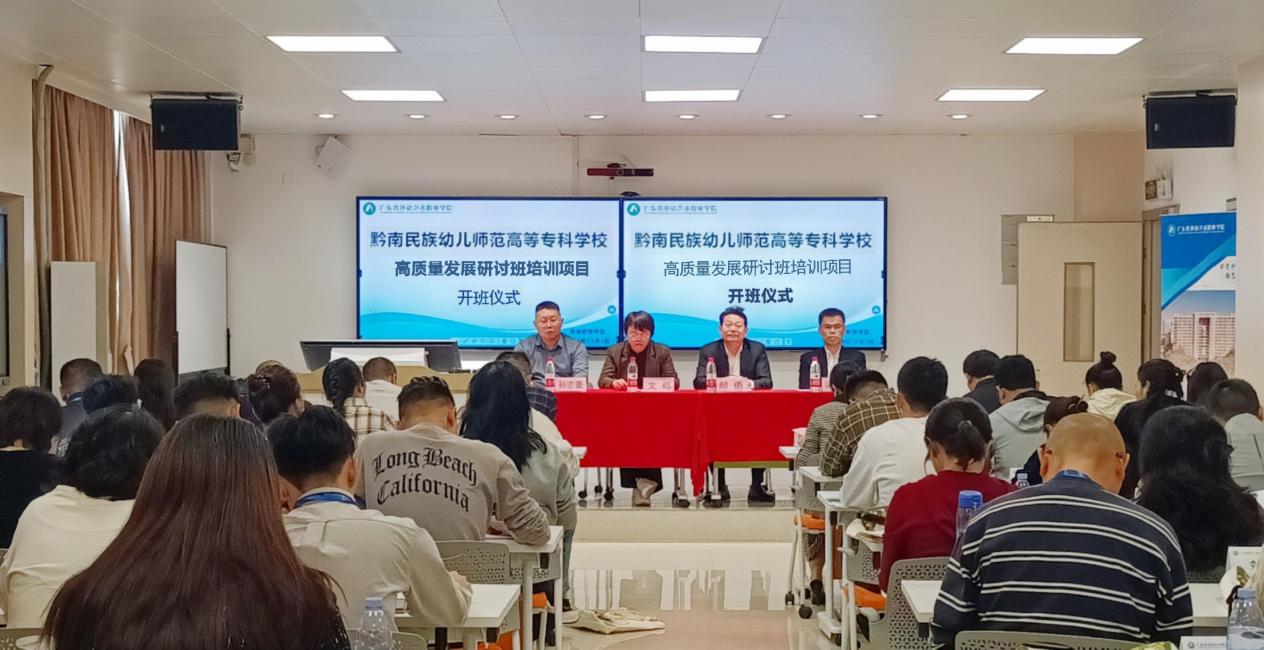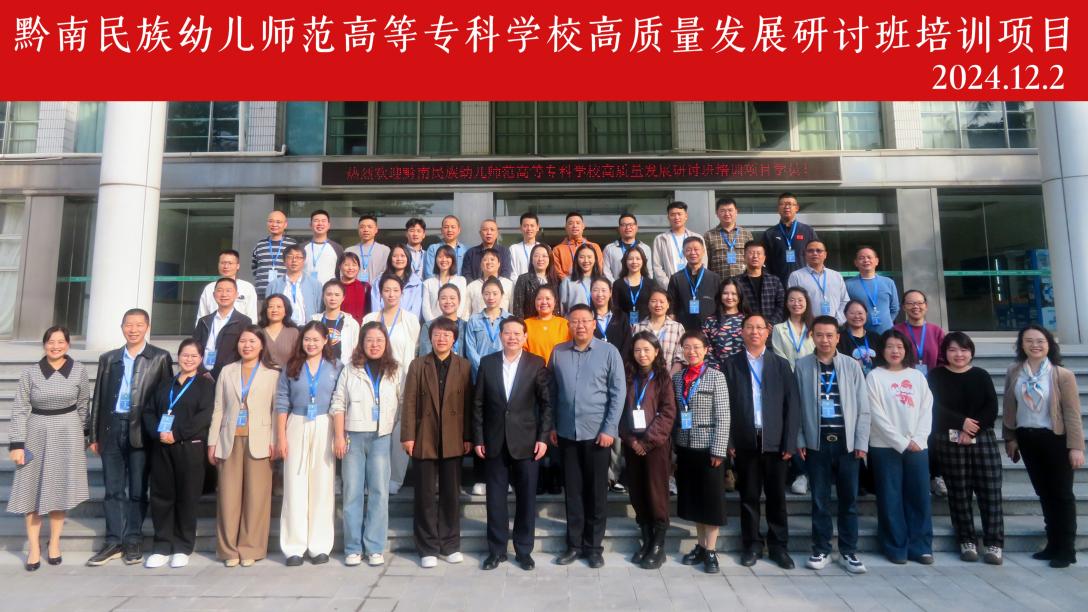 12月2日,黔南民族幼儿师范高等专科学校高质量发展研讨班培训项目在学校燕岭校区开班。学校副校长郝勇,黔南民族幼专副校长文砾,学校相关部门负责人、黔南民族幼专的50名干部学员参加了开班仪式。