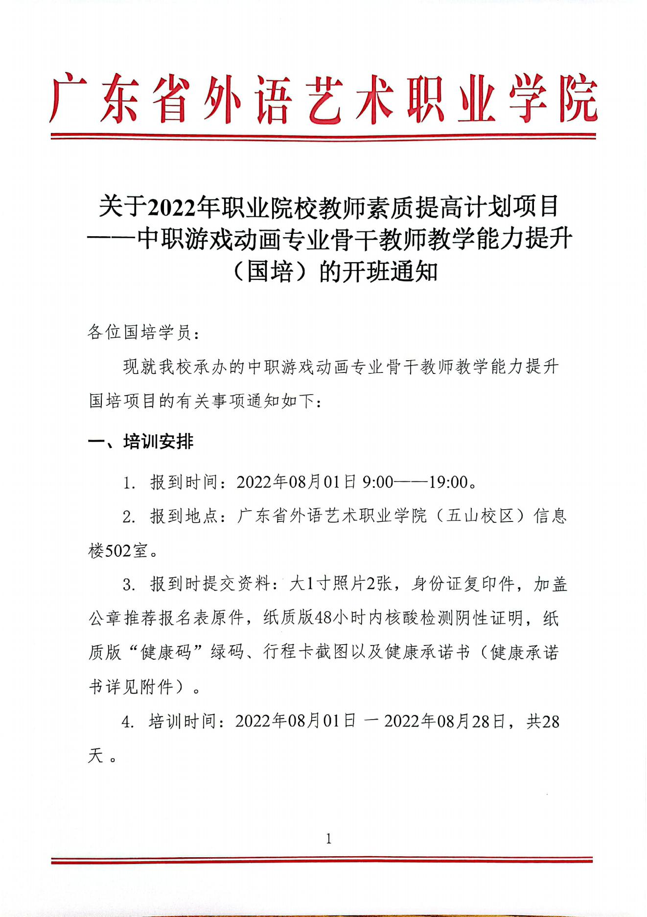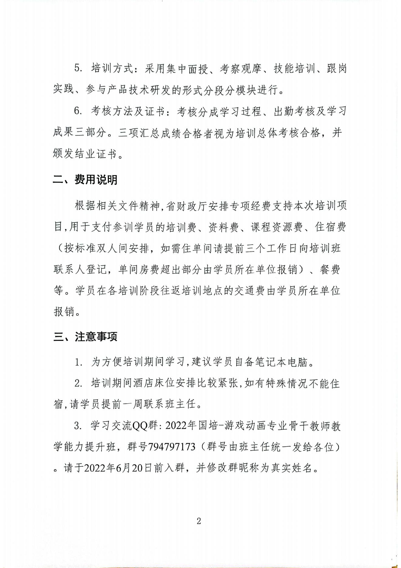 关于2022年职业院校教师素质提高计划项目 ——中职游戏动画专业骨干教师教学能力提升 (国培)的开班通知