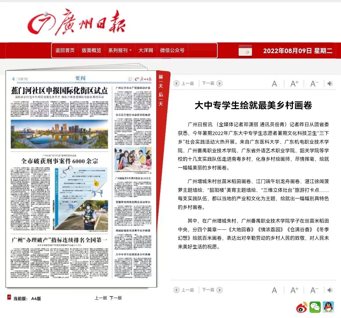 广州日报要闻:大中专学生绘就最美乡村画卷