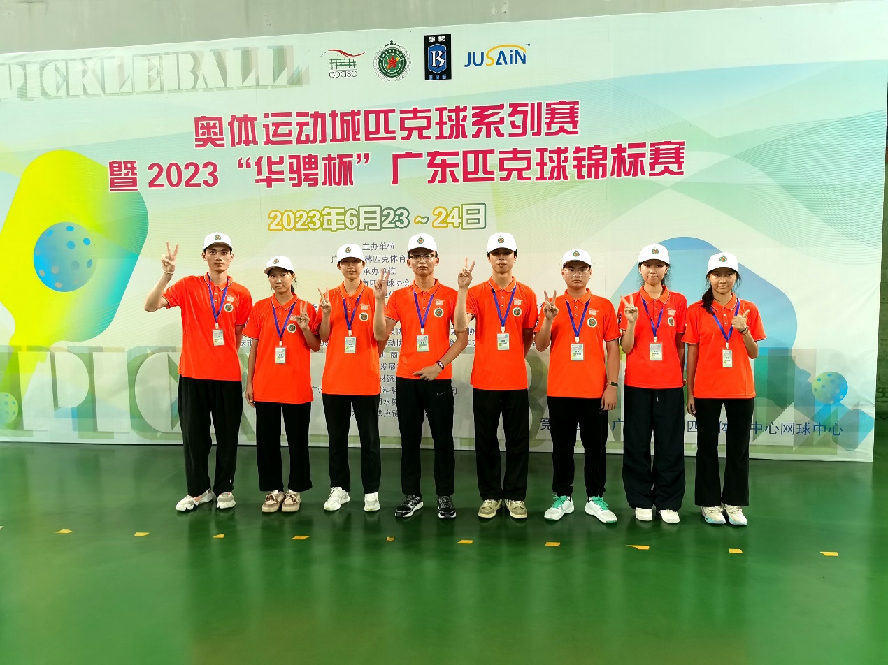 6月23日至24日,奥体运动城匹克球系列赛暨2023“华骋杯”广东匹克球锦标赛在广东省奥林匹克体育中心网球中心举行。经过两天激烈角逐,我校师生匹克球代表队斩获成人甲组-混合团体季军,成人团体赛乙组跃进前八,个人项目庄语桐荣获U17女子组冠军,吴声杰、林烨取得U17男子组亚军。