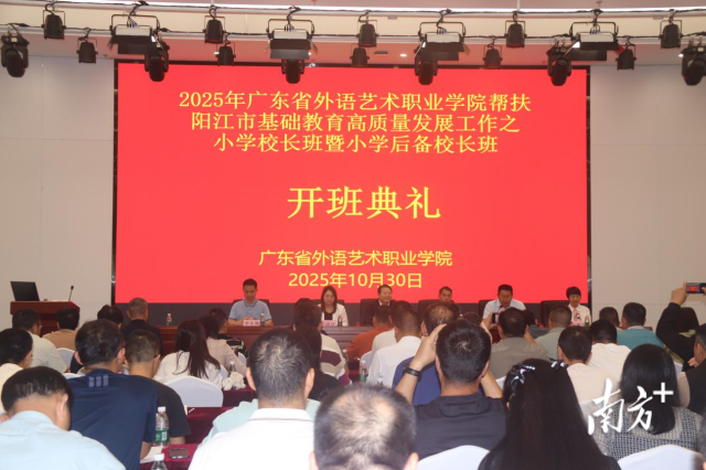 卢荣存在开班仪式上介绍了阳江市基础教育发展现状,表示本次培训对于破解城乡基础教育发展瓶颈、培育骨干管理团队具有重要意义。郝勇则寄语全体学员坚守教育初心、坚持学用结合、严守培训纪律,鼓励学员在互学互鉴中凝聚发展共识。