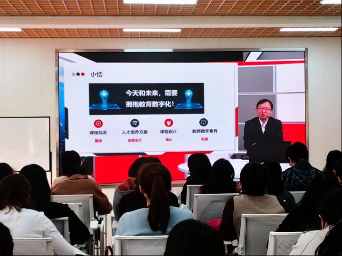 最后,力拓公司张鹏飞老师带来了“在线精品课程建设”的讲座。张老师从在线课程的设计、实施、评估等方面分享了在线精品课程建设经验。她鼓励教师们把握在线教育的发展趋势,以创新的精神投入到课程建设中,提升教育教学质量。
