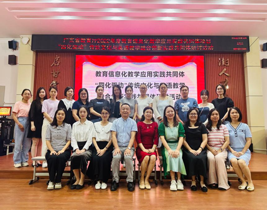 为进一步推进我校2022年度广东省教育信息化教学应用创新实践共同体项目——“四化驱动”传统文化与英语教学融合创新共同体项目建设,联合小学一线共同开展传统文化与英语教学融合创新实践工作,5月16日下午,项目组指导花都区教育研究院在花都区新华街棠澍小学举行了以《“四化驱动”传统文化与英语教学深度融合与实践》为主题的项目研讨活动,项目负责人基础教育学院党委书记黄艳、部分项目组成员及花都区小学英语教师等150余人在线下参加活动。活动通过鲲翼教师学苑平台向全国同步直播,线上观看人数达5330人次。
