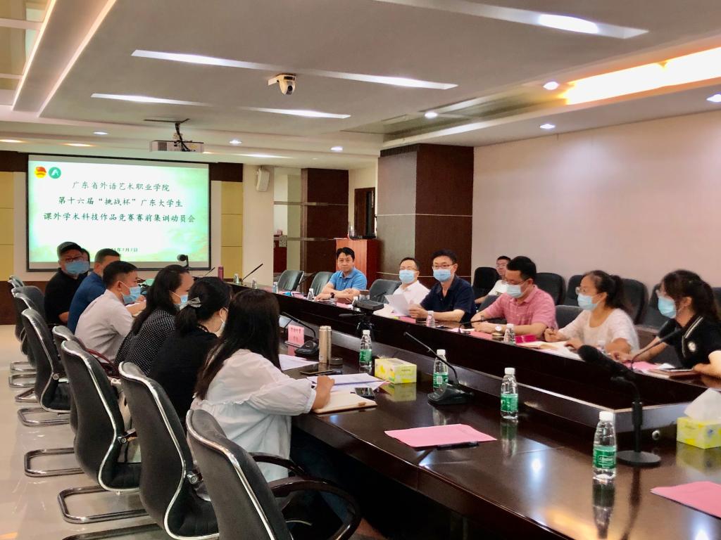 为充分做好第十六届“挑战杯”广东大学生课外学术科技作品竞赛赛前集训工作,7月7日上午,校团委组织召开了赛前集训动员大会。学校党委副书记、纪委书记陈楚瑞,学生处、后勤处、现代教育技术中心负责人,外语外贸学院、艺术设计学院党总支负责人及团总支负责人、校团委老师、项目指导教师和团队成员参加会议。