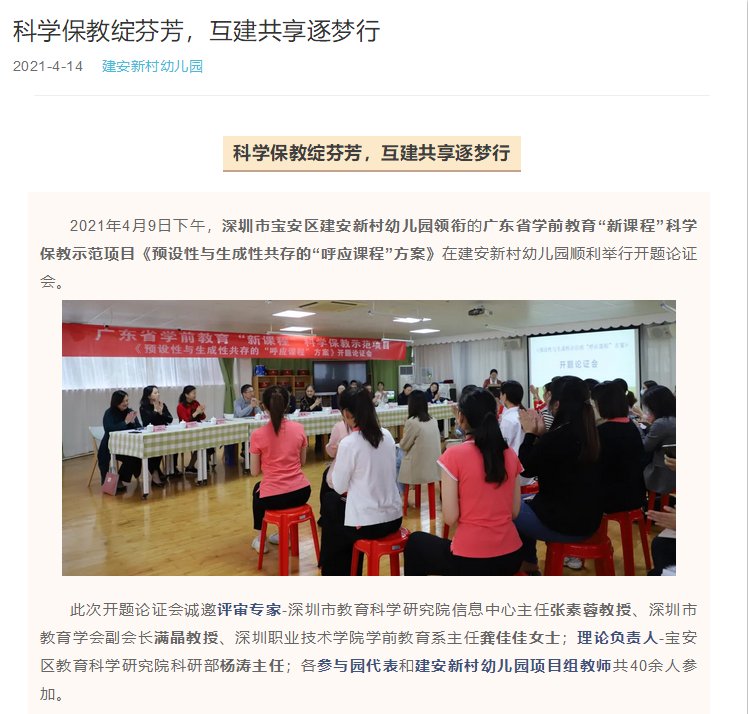 图:深圳市宝安区建安新村幼儿园开题教研活动
