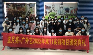 为深入推进产教融合,提高学生实践教学质量,财会金融学院于10月底联合蓝月亮(中国)有限公司,充分利用企业和学校双方的资源优势,共同开展客服岗位的实训,用真实的岗位培养学生的岗位技能,蓝月亮2022年“双十一”校企合作项目近期圆满结束。为了表彰优秀、鼓励先进,近日,“广外艺-蓝月亮双十一”项目实训表彰大会在我校龙洞校区举行。出席本次会议的有公司的客服部总经理薛飞燕、首席培训导师黄思妮、运营推广教研室主任谢涛洪、指导老师代表蔡宗霞、刘婷婷和实训学生代表40人。