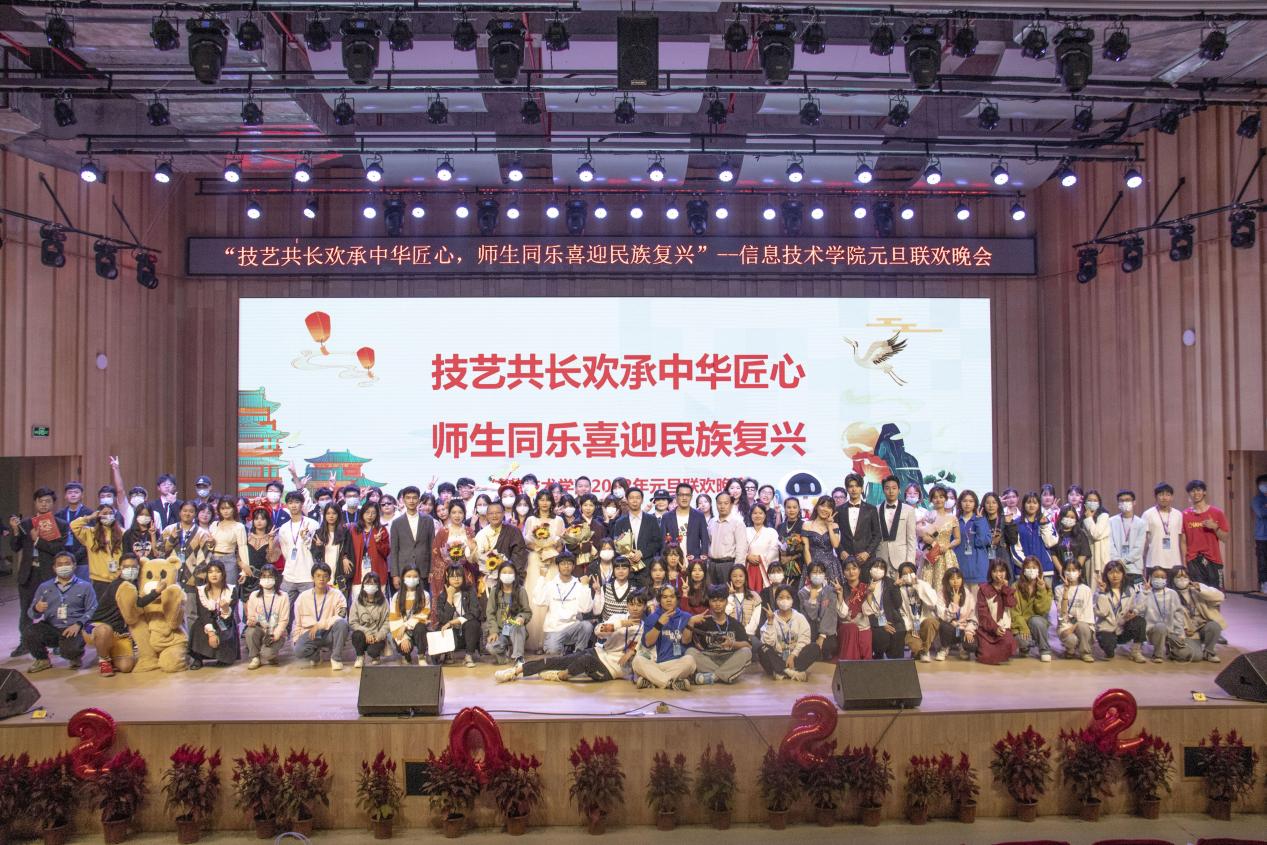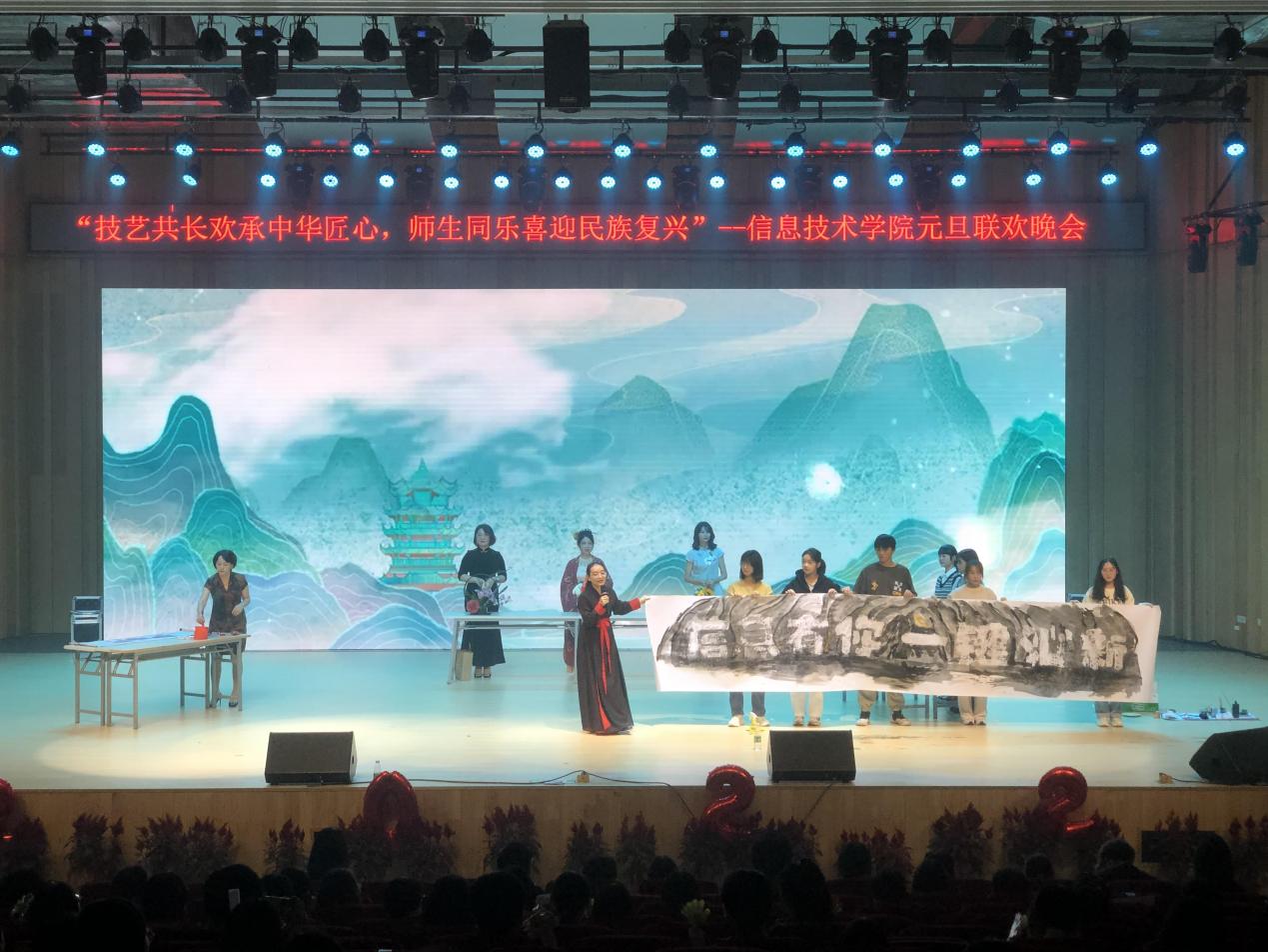 为在思想政治教育和价值引领中落实“三全育人”工作,融入到思想道德教育、文化知识教育、社会实践教育各环节,不断深化“三全育人”改革,在育人的高度、力度、效度上下功夫,把立德树人根本任务落到实处,12月25日晚上,信息技术学院在五山艺体中心四楼音乐厅成功举办了2022年师生联欢元旦晚会。学校副校长郝勇、信息技术学院党总支书记钟之静、院长周向军、学院领导老师、五山校区、海珠校区以及天平架校区老师们以及全体师生线上线下观看了晚会,一起欢度了本次师生联欢元旦晚会。