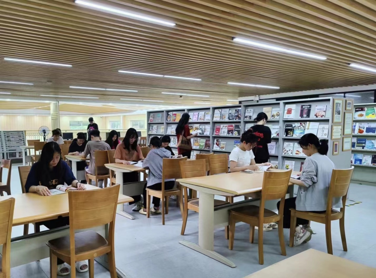 在龙洞校区,图书馆根据外语外贸学院的专业特色,推出了外语阅读图书展,展出的一批外文图书让师生们领略异国文化,拓宽国际视野。许多读者驻足翻阅,沉浸在语言文字的海洋中,享受着阅读的乐趣。