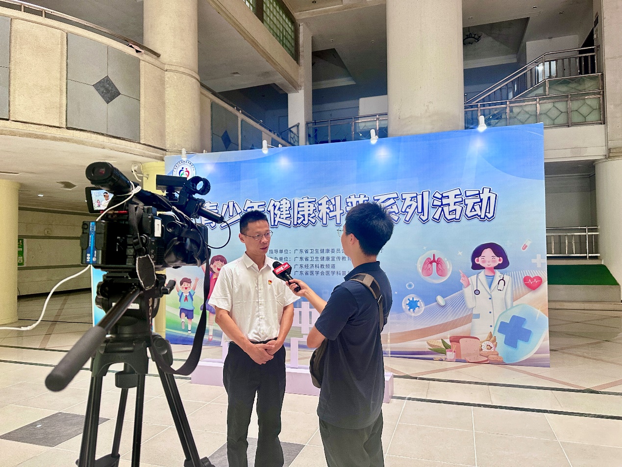 会前,黄泽瑜作为校方代表接受了来自广东经济科教频道记者的采访。认为我校举办青少年健康科普活动的意义重大,充分体现了落实《“健康中国2030”规划纲要》,深入推进健康广东的具体行动。此类活动有助于学生了解更多科学的健康知识,也为未来走向社会岗位,将科学健康理念传播给他人打下坚实基础。