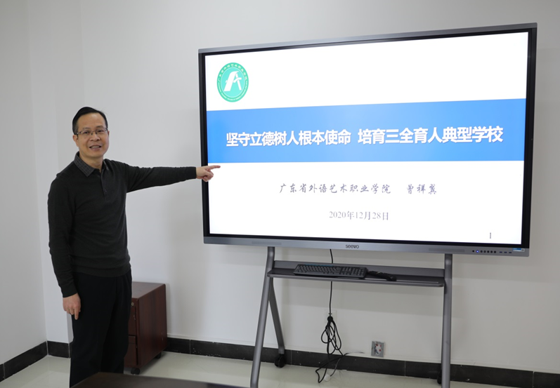 在实践路径上,曾祥翼强调,学生工作队伍应学深悟透《高校思想政治工作质量提升工程实施纲要》《关于加快构建高校思想政治工作体系的意见》《关于开展“三全育人”综合改革试点工作的通知》《职业教育提质培优行动计划(2020—2023年)》等四大支撑政策,夯实育人体制机制、思想政治教育、人才培养质量、育人队伍建设、管理服务质量五大基础,聚焦共识、机制、协同三大关键问题,把握“全”字抓“综合”、“育”字抓“提质”、“优”字抓“典型”、“效”字抓“落实”等四项重点任务,把促进学生成长成才作为学校一切工作的出发点和落脚点,以“十大育人体系”和“六大育人阵地”为抓手,打破条块分割的藩篱,狠抓工作落实,发挥典型示范作用,一体化构建内容完善、标准先进、运行科学、保障有力、成效显著的“三全育人”工作新格局,打造具有时代特点和广外艺特色的育人模式。