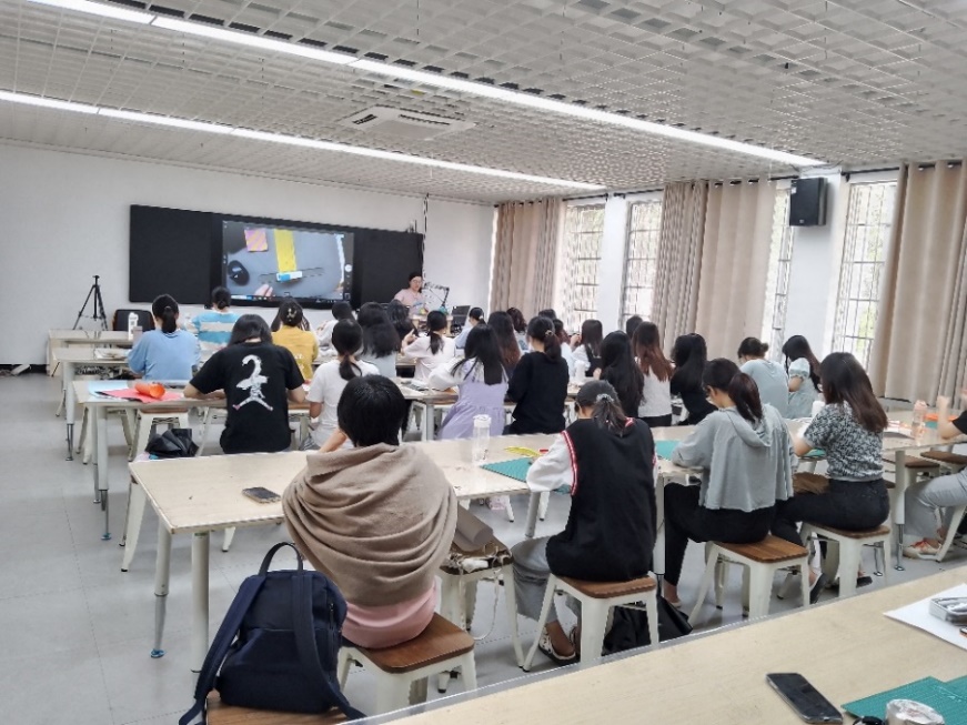 图: 陈培老师讲授幼儿编织常用的图案编织和立体编织方法公开课现场