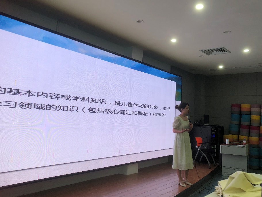 图:马欣悦老师讲授什么是有准备的教师、教师主导的教和幼儿主动的学如何平衡公开课现场