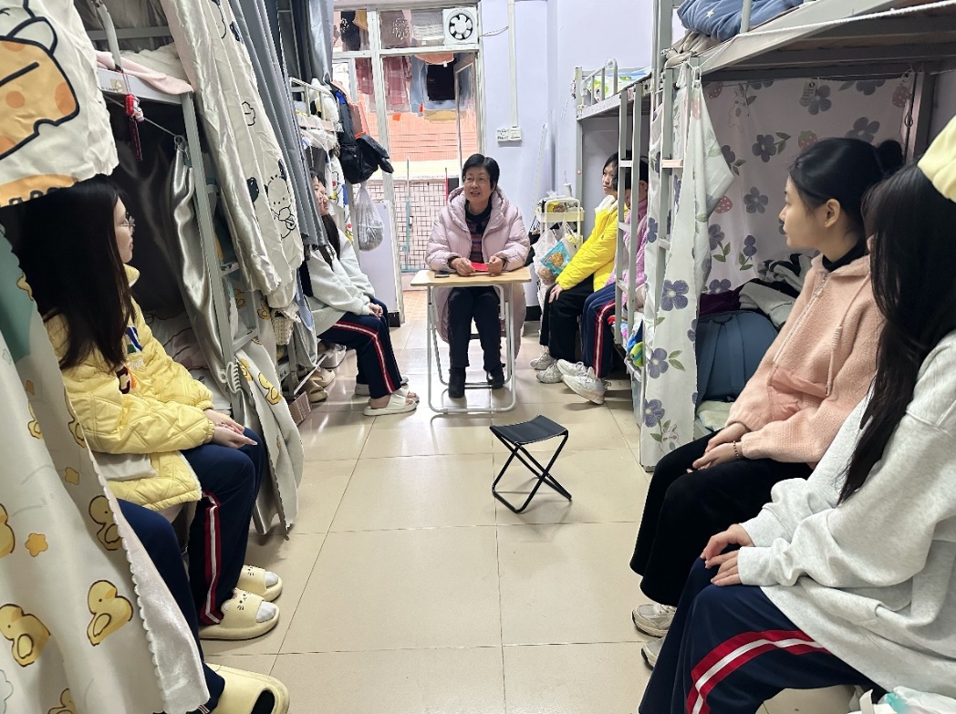 近日,中职教育部党总支书记陈杰深入学生宿舍开展谈心谈话活动,与女生宿舍A203的学生们进行了一场亲切而真挚的交流。此次活动旨在了解同学们在宿舍的生活、学习和心理状况,积极解决同学们的困难,为他们的成长提供支持和帮助。