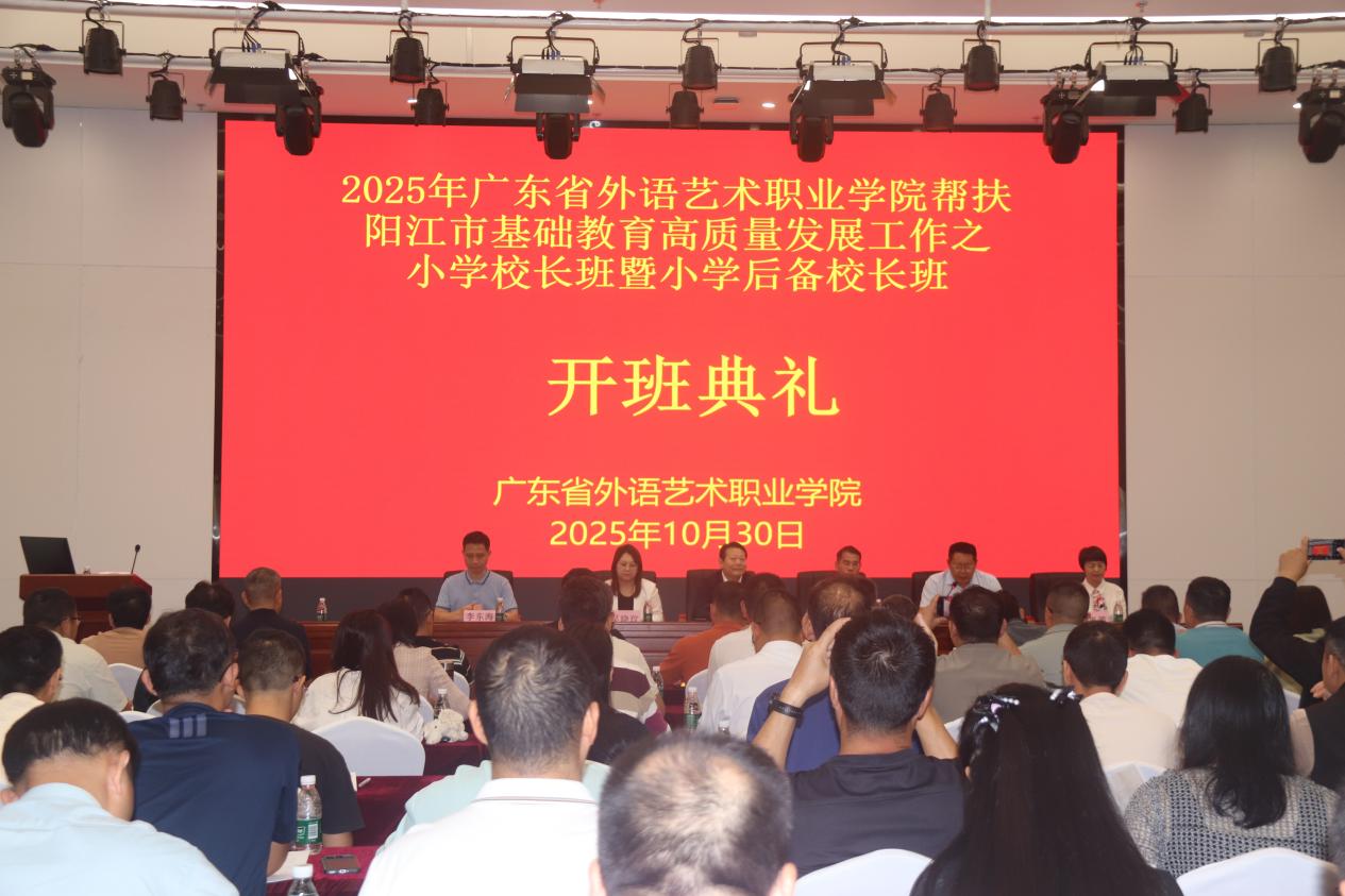 下午,调研组前往阳江市教师发展中心,出席2025年学校帮扶阳江市基础教育高质量发展之小学校长班暨小学后备校长班开班仪式。来自阳江市相关学校的150名小学校长、后备校长参加了开班仪式。