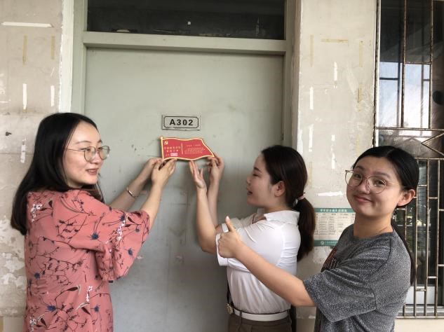 会议结束后,老师们和学生党员前往学生宿舍,为学生党员所在宿舍颁发并悬挂“党员之家”牌匾。