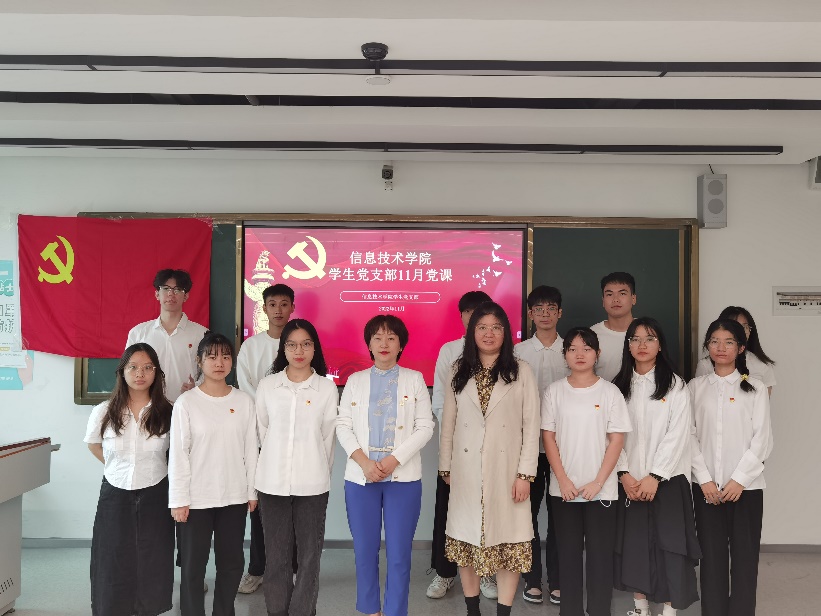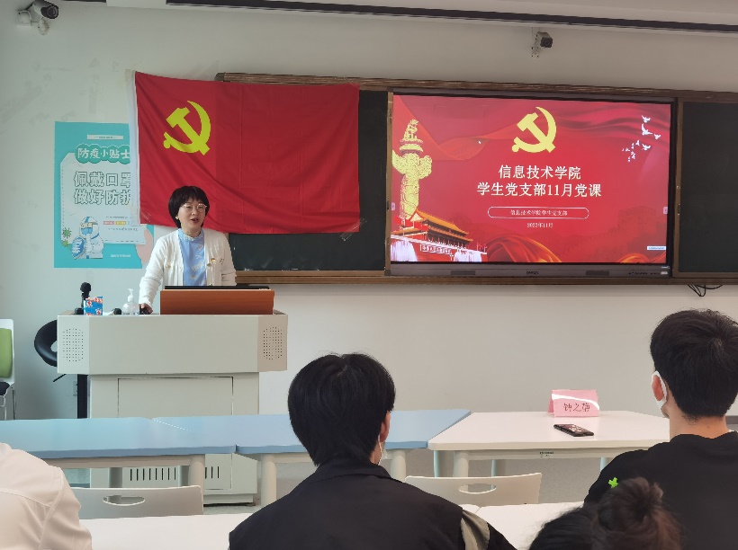 为深入学习宣传贯彻党的二十大精神,进一步增强信息技术学院学生党支部的凝聚力和战斗力,充分发挥党员的先锋模范作用,11月25日上午,信息技术学院学生党支部在综合楼605A召开学习党的二十大精神专题党课,学习《中国共产党章程(修正案)》。信息技术学院党委书记钟之静、专职组织员王翠出席本次会议,全体学生党员参加学习。