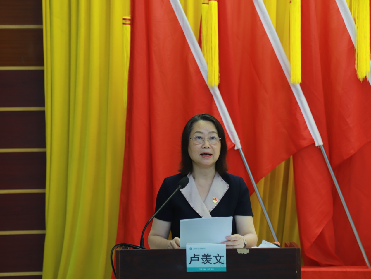 卢羡文带领大家学习感悟了党的伟大成就,回顾总结了近两年学校所取得的各项喜人成绩。学校在党建示范创建和质量创优工作屡获新突破,已建设全国党建样板支部1个、全省党建标杆院系1个、全省党建样板支部2个、全省“双带头人”工作室2个。2022年学校入选省域高水平高职院校建设计划建设单位,成为广东省高等职业教育数字化标杆学校建设单位、广东省绿色学校,顺利通过广东省依法治校示范校、广东省大学生创新创业教育示范学校复评。她指出,站在新的历史起点上,以奋发有为的精神状态、扎扎实实的工作业绩,贯彻落实好党的二十大作出的重大决策部署,是每一个共产党员应有的责任与担当。