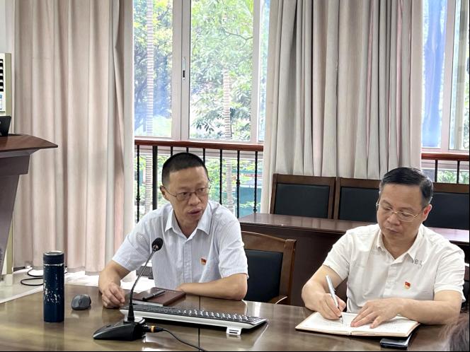 为持续推进学习贯彻习近平新时代中国特色社会主义思想主题教育走深走实,7月5日,校党委副书记黄泽瑜在五山校区行政楼202为学生工作部党支部讲授“学习习近平总书记关于教育的重要论述,坚持立德树人,培养时代新人”的主题党课,会议由学生工作部党支部书记曾祥翼主持,学生工作部党支部全体成员参会。