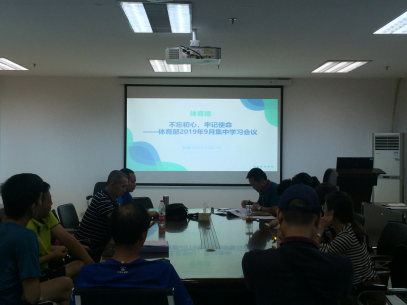 9月23日下午14:30,体育部党支部在五山校区行政楼201会议室召开“不忘初心、牢记使命”专题学习会议,会议由体育部党支部林燕荣书记主讲,主要学习“不忘初心、牢记使命”主题教育材料、习近平总书记对教育的重要论述等相关内容,体育部全体教职工参会。