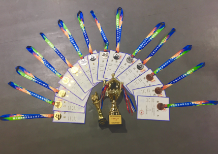 我校运动健儿表现出来的顽强拼搏、积极进取的优良作风以及精湛的球技给各参赛队伍留下深刻的印象,经过两天的激烈角逐,最后荣获丙组女子三人赛第二名、平踢毽球男女混合三人赛第三名、丙组团体总分第二名的优异成绩。