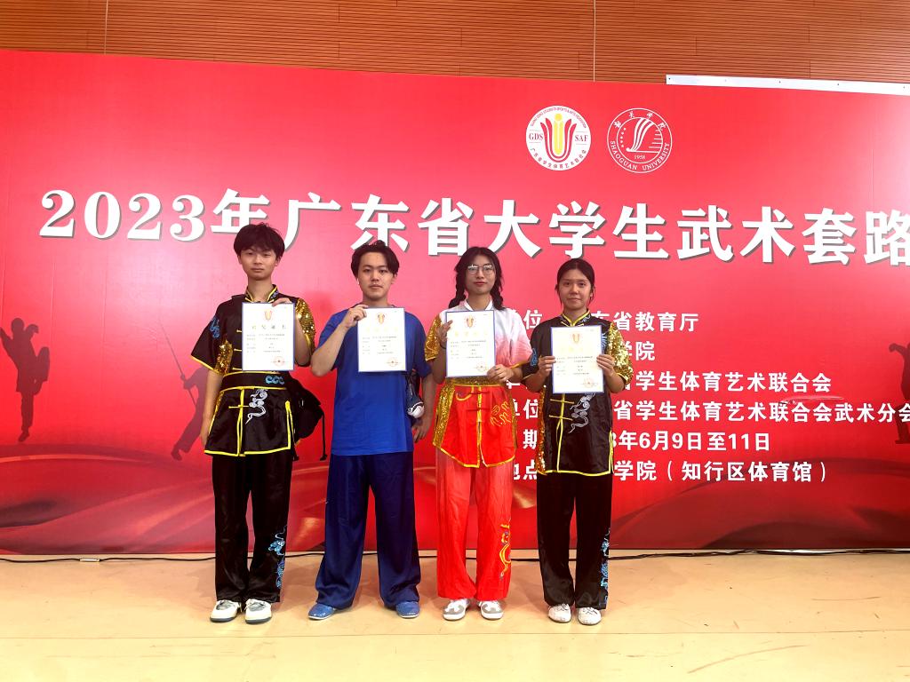 6月9日-11日,2023年广东省大学生武术套路锦标赛在韶关学院顺利举行,我校武术队在领队刘银芳,教练武胜奇、林燕荣的带领下,共派出五名运动员参加了丙组的比赛。经过激烈的比拼,我校学前教育学院张曼乔斩获女子自选剑术亚军,音乐舞蹈学院徐灏轩获得男子自选南拳第七名,艺术设计学院全雷获得男子自选刀术第七名,外语外贸学院陈小捷获得女子自选枪术第八名,为学校争得了荣誉。