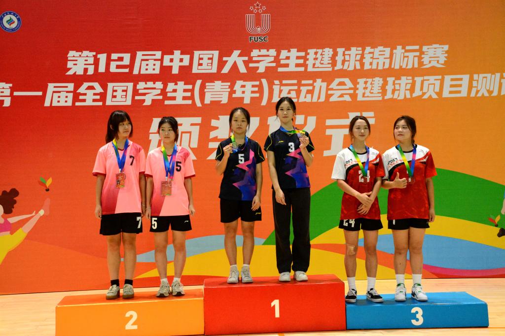 9月18日-23日,第12届中国大学生毽球锦标赛暨第一届全国学生(青年)运动会毽球项目测试赛在广西民族大学举行,来自南京大学、广州大学等国内45所高校的382名运动员角逐20个小项的比赛。我校共派出3名学生参赛,经过六天的激烈比拼,我校女子三人、双打毽球荣获冠军,女子单打毽球荣获亚军,花毽三人赛、单人盘踢荣获第三名的优异成绩。