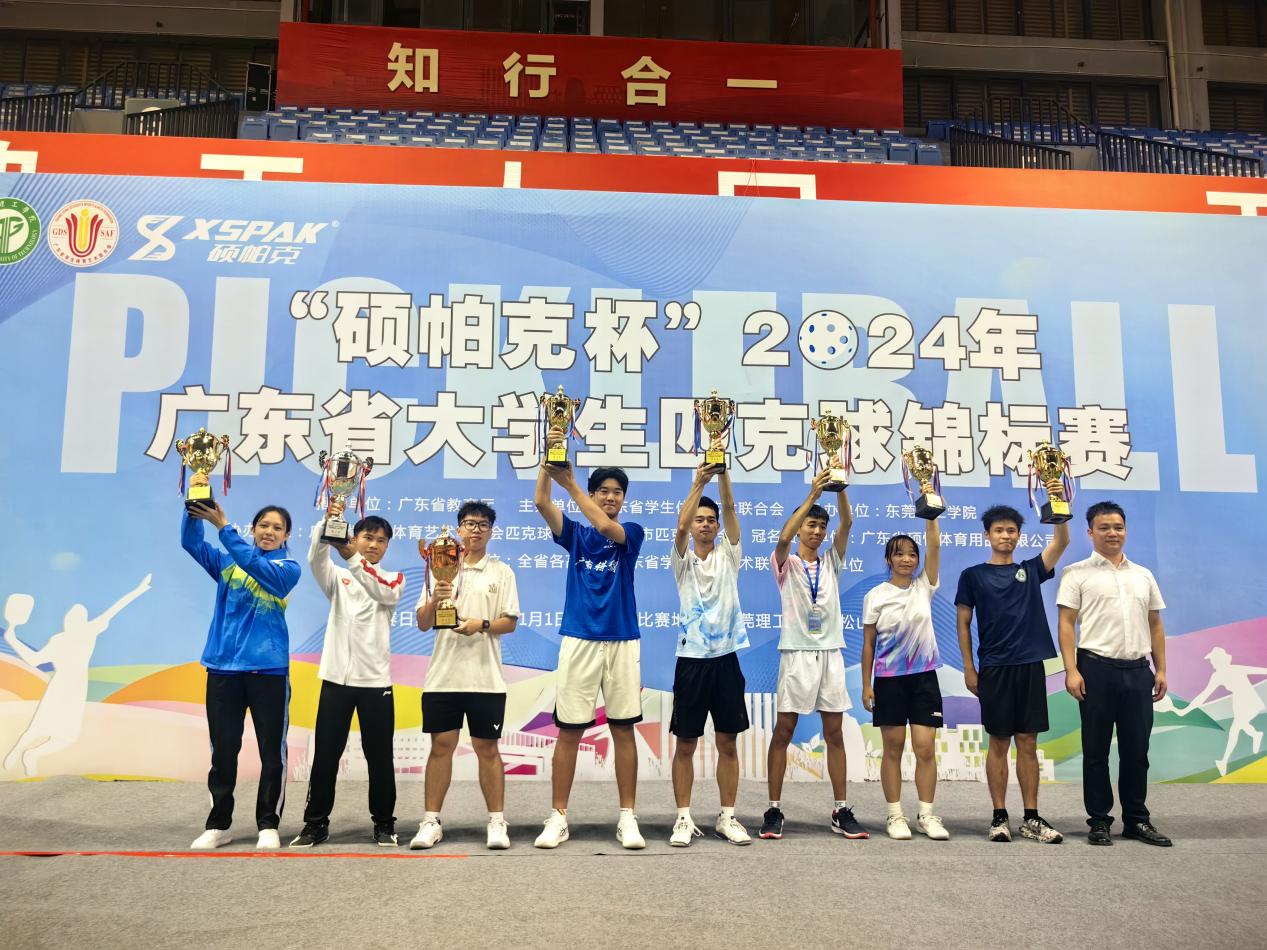 11月2日至3日,“硕帕克杯”2024年广东省大学生匹克球锦标赛在东莞理工学院松山湖校区举行,活动吸引了来自广东省各高校的38支代表队、近570名教练员与运动员参赛。我校匹克球队在领队刘银芳,教练张茂添、李太荣的带领下,共派出12名队员,经过多轮激烈角逐,凭借出色的团队协作和精湛的技术,在众多强队中脱颖而出,勇夺2金1银2铜的佳绩,最终摘得丙组团体冠军,载誉而归。