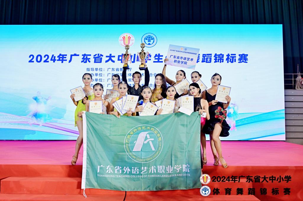 11月8日,由广东省教育厅指导,广东省学生体育艺术联合会主办的2024年广东省大中小学体育舞蹈锦标赛在广东外语外贸大学(大学城校区)拉开帷幕。校体育舞蹈代表队在领队林燕荣、教练员覃芳艳、龚浩、吴琳的带领下,派出6位选手参加专业组乙B组、10位选手参加大专院校组丙组角逐,经过90多场拉丁舞、摩登舞等项目比赛,最终荣获乙组团队总分第三名,丙组团队总分第七名的好成绩。