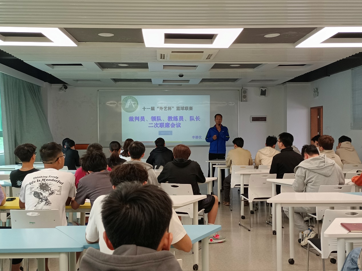 为加强学生篮球裁判员队伍建设,强化对“外艺杯”篮球赛举办理念的认同,以期高质量、更高效地完成“外艺杯”篮球赛,3月15日下午,体育工作部在五山校区综合楼606课室组织召开裁判员、领队、教练员、队长的二次联席会议暨篮球教研活动。体育工作部主任林燕荣、相关老师,以及30多支参赛队的领队、教练员、队长共80多人参加会议。