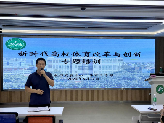 樊莲香教授紧紧围绕高校体育教学改革的意义、内涵、原则、发展的趋势、课程的建设、国家级教学成果奖的培育与申报等内容展开培训;结合“华南理工大学全面加强和改进新时代学校体育工作行动方案”,深入浅出解读了体育改革与创新的实现路径,强调了体育与科技的结合,丰富体育教学内容和手段,让数字体育赋能体育改革提速增效。