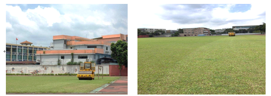 因今年春季雨多潮湿,燕岭校区足球场部分草坪存在积水情况,且足球场出现大量的蚯蚓土堆,造成场地松动且凹凸不平等问题。