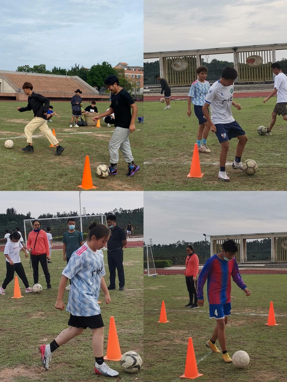 随着一声哨响,足球绕杆比赛正式开始,一人、一球在风中透着独属于少年的青春气息。所有参赛者都紧盯脚下的足球,全神贯注。有的同学小心翼翼地带着球一小步一小步地过;有的同学大跨步地侧身、勾脚,人带着球快速过了一个又一个雪糕筒!即使偶尔有同学没有绕过雪糕筒,他们也并不气馁,锲而不舍,在竞技中分享运动的快乐,在拼搏中显示着青春的力量。