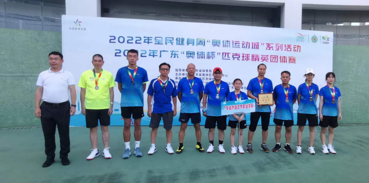 8月20日,2022年全民健身周“奥体运动城”系列活动之广东“奥体杯”匹克球精英团体赛在广东省奥林匹克网球中心举行。本次比赛由广东省体育局指导、广东奥林匹克体育中心主办,广州市匹克球协会承办,组委会组织了来自全省各地的多支精英队伍参加,我校工会派出以张茂添老师为队长的10名职工参加比赛。比赛中我校教职工队伍发挥出色,荣获了团体比赛“优胜奖”。