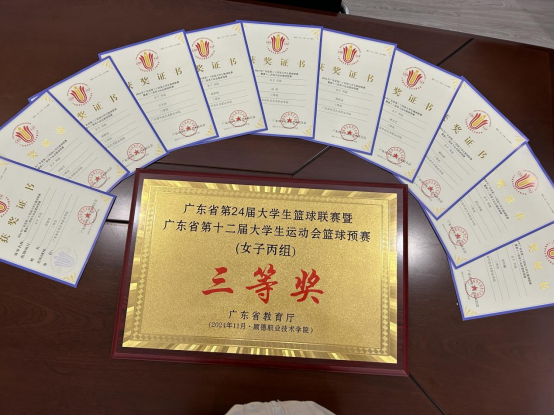 2024年11月16日-11月20日,2024年广东省第二十四届大学生篮球赛暨第十二届省大学生运动会篮球预赛(女子丙组)在顺德职业技术学院体育馆圆满落幕。本次赛事吸引了全省85支高职院校男、女篮球队的1746名领队、教练员、运动员参加比赛。学校女篮在领队武胜奇教授,教练庞日保、陈谋的带领下,经过五天的鏖战,我校女篮以顽强的拼搏精神和出色的团队协作,荣获了本次篮球赛的三等奖。