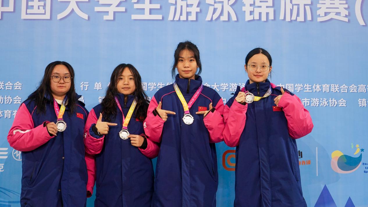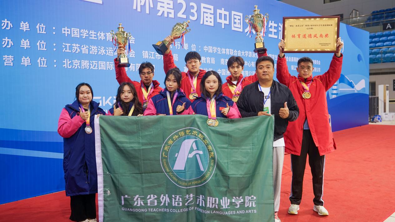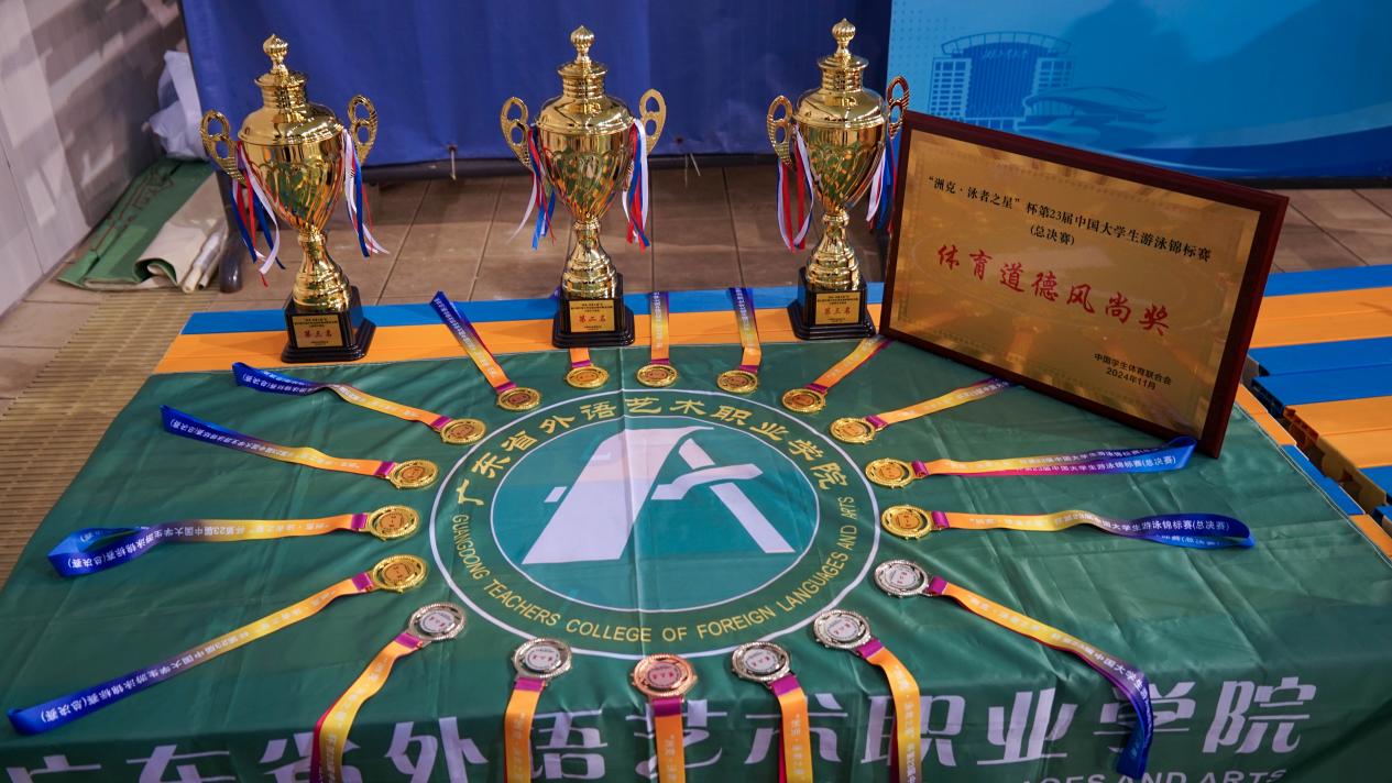 11月25日至12月1日,在江苏省镇江市奥林匹克游泳馆举行的第23届中国大学生游泳锦标赛圆满落幕,本次赛事共有来自全国150所高校参与角逐。学校游泳健儿们在领队武胜奇,教练员林燕荣、李瑞嘉的指导下劈波斩浪、奋勇争先,最终以6金2银1铜的辉煌战绩,荣登金牌榜首位,女、男团总分分别排列第二名、第三名,团体总分高居第三,为学校的高质量发展贡献体育力量。