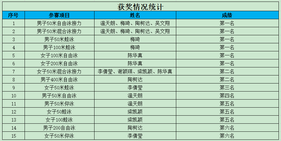 辉煌的战绩,不仅彰显了我校游泳健儿们的卓越实力与不懈追求,更体现了学校体育精神的传承与发展,游泳项目已成为学校的一张闪耀体育名片。校游泳队表示将继续保持这份热情和毅力,不断突破自我,再创辉煌。