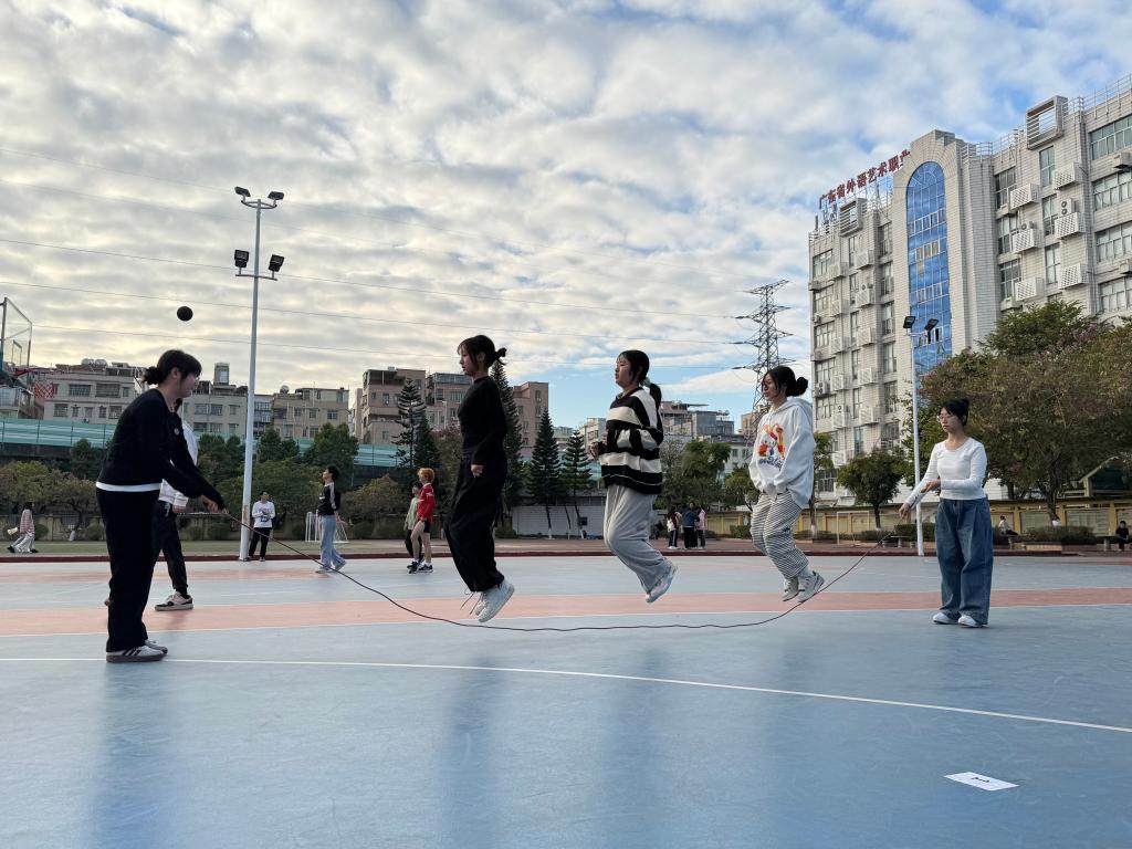 在龙洞校区操场上绳影翻飞,选手们个个精神抖擞、斗志昂扬。个人速跳中,选手们像上紧了发条的机器,每秒多次的跳跃让人心跳加速。团体赛中,各团队团结协作、默契配合,每一次成功的跳跃都凝聚着团队的智慧与汗水。