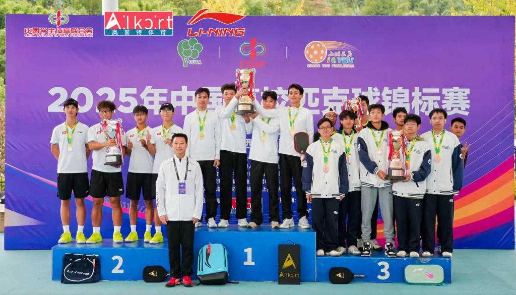 2025年11月1日至6日,中国高校匹克球锦标赛在江西省上犹生态匹克球运动中心成功举办。作为习近平总书记复信美国马里兰州青少年匹克球队访华团后国内举办的最高级别高校匹克球赛事,本次比赛汇聚了来自全国百余所高校的1000余名运动员。校匹克球队在张茂添教练的带领下,共派出6名男女运动员参赛。经过激烈角逐,校匹克球队奋勇拼搏,最终斩获乙组女子团体第一名、乙组男子团体第三名的优异成绩,为学校体育事业再添光彩。